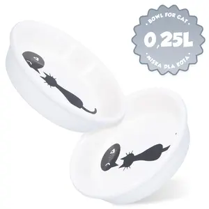 Miska ceramiczna z kotem 0,25 l / 13 cm biała
