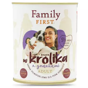- Skład:wieprzowina 50% (mięso, wątroba, płuca), królik 14% (płuca, serca, nerki), rosół z królika 27,5%, gruszka 4%, ryż 3,3 %, minerały 1%, olej z łososia 0,1%, suszone jagody goji 0,5%, ekstrakt jukki mojave 0,01%.