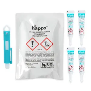 - Zawartość zestawu:Krople na pchły i kleszcze dla psów 5 - 10 kg (4 tubki x 1ml), szczypce do usuwania kleszczy