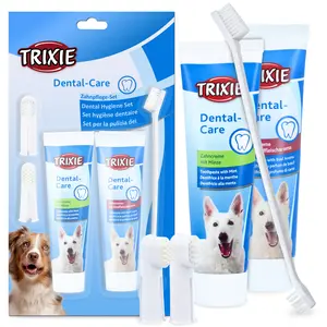 - Skład zestawu:Dwustronna szczoteczka, nakładka czyszcząca, nakładka masująca, pasta miętowa 1 x 100 g, pasta o smaku wołowiny 1 x 100 g