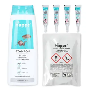 Krople dla psów 10 - 20 kg, obroża 60 cm dla dużych psów i szampon 250 ml przeciw pchłom / kleszczom