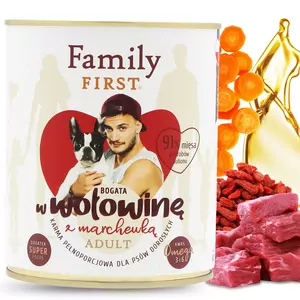 - Skład:Mięso wołowe (70%), skrobia, białko roślinne, gliceryna