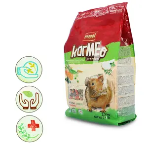 - Skład:Tymotka, lucerna, łuski sojowe, łuski owsiane, makuch z nasion słonecznika, jęczmień, pszenica, otręby pszenne, kukurydza, skrobia kukurydziana, płatki kukurydzy, płatki grochowe, marchew suszona, burak suszony, pasternak suszony, jabłko suszone (1%), pszenica prażona, papryka suszona (0,5%), porzeczka czerwona suszona (0,5%), kwiat nagietka suszony (0,5%), skrobia ziemniaczana, olej słonecznikowy, pulpa buraczana, pulpa jabłkowa, zioła (bazylia, rozmaryn, mięta pieprzowa, tymianek), węglan wapnia, fosforan dwuwapniowy, chlorek sodu, juka.