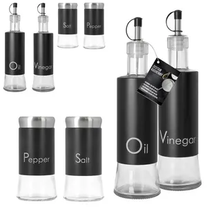 Przybory na przyprawy - sól, pieprz, oliwa, ocet, pojemniki małe - 6 szt. czarny