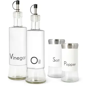 - Zawartość zestawu:1x pojemnik na sól, 1x pojemnik na pieprz, 1x dozownik na oliwę, 1x dozownik na ocet