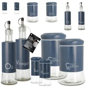 - Zawartość zestawu:1x pojemnik na sól, 1x pojemnik na pieprz, 1x dozownik na oliwę, 1x dozownik na ocet, 2x pojemnik 1l, 2x pojemnik 0,75l