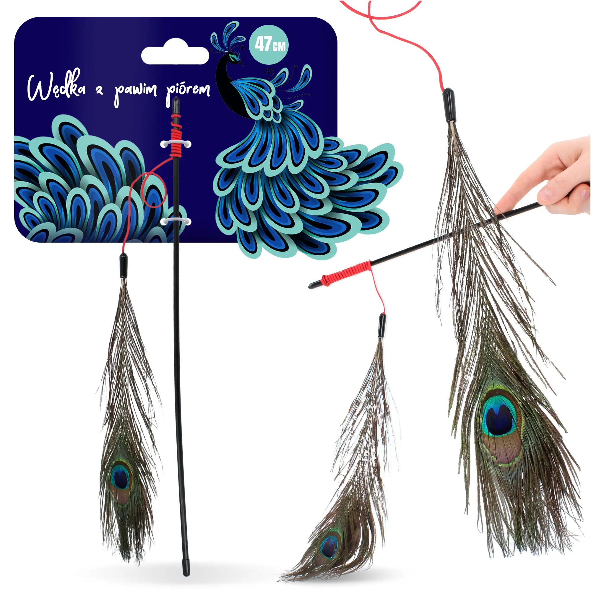 Wytrzymała wędka z pawim piórem to strzał w dziesiątkę! Twój kociak pokocha tę zabawkę, nawet jeżeli jest wyjątkowo opornym zwierzakiem.