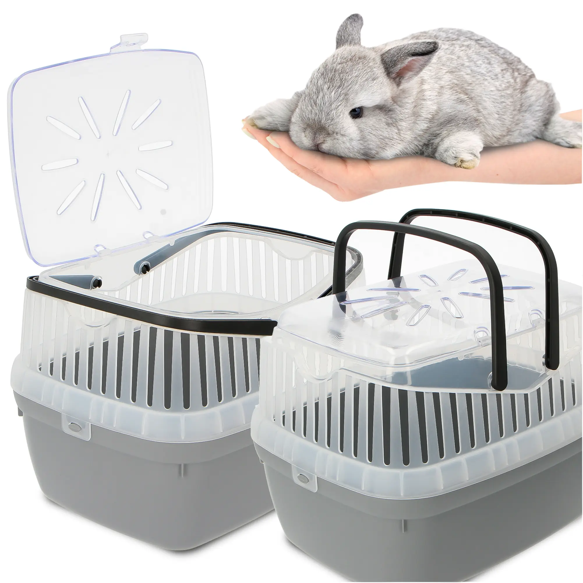 Przenośnik został wyposażony także w dwie rączki plastikowe. Dzięki nim jest zdecydowanie bardziej stabilny, a podczas przenoszenia można uniknąć nadmiernego kołysania, które mogłyby być dla gryzonia lub królika stresujące.