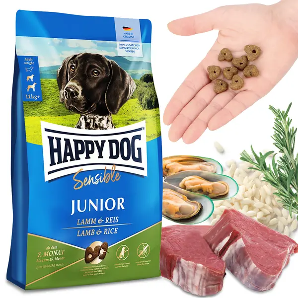 | Skład | białko jagnięce* (19%), mączka ryżowa (17%), mąka kukurydziana, skwarki, tłuszcz wołowy, hydrolizat wątroby, olej słonecznikowy, melasa buraczana* (bez cukru), wytłoki jabłkowe* (0,7%), chlorek potasu, olej rzepakowy, drożdże*, chlorek sodu, algi morskie, siemię lniane (0,16%), łupiny babki jajowatej (0,1%), mięso małży* (0,05%), juka schidigera*, drożdże (wyciąg), ostropest plamisty, karczoch, mniszek, imbir, liście brzozy, pokrzywa, rumianek, kolendra, rozmaryn,szałwia, korzeń lukrecji, tymianek, (zioła suszone razem 0,16%);*) suszona/y/e. |