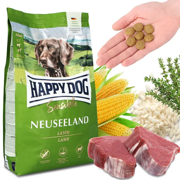 Happy Dog Neuseeland to wysokiej jakości karma przeznaczona dla psów dorosłych - ras średnich i dużych. W jej skład wchodzi jagnięcina i ryż, dzięki czemu to pożywienie wyjątkowo delikatne dla psiego żołądka. Karma dostarcza wszystkich niezbędnych składników, jakich potrzebuje psi organizm.