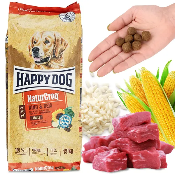 Karma Happy Dog NaturCroq z wołowiną i ryżem to wyjątkowo smaczna sucha karma, która dostarcza wszystkich niezbędnych składników odżywczych. Granulat wyróżnia się wysoką zawartością białka i brakiem cukru oraz sztucznych konserwantów.