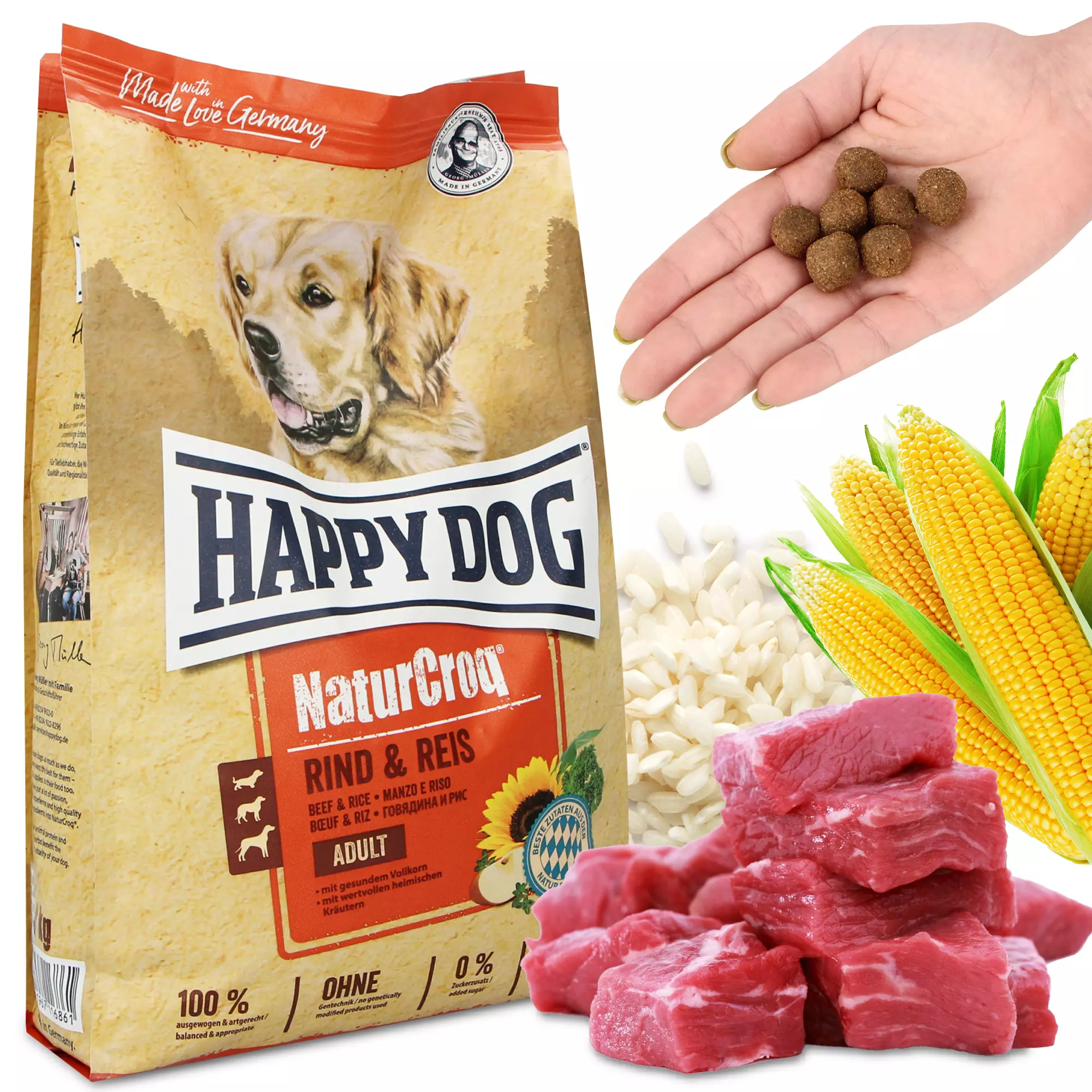 Karma Happy Dog NaturCroq z wołowiną i ryżem to wyjątkowo smaczna sucha karma, która dostarcza wszystkich niezbędnych składników odżywczych. Granulat wyróżnia się wysoką zawartością białka i brakiem cukru oraz sztucznych konserwantów.