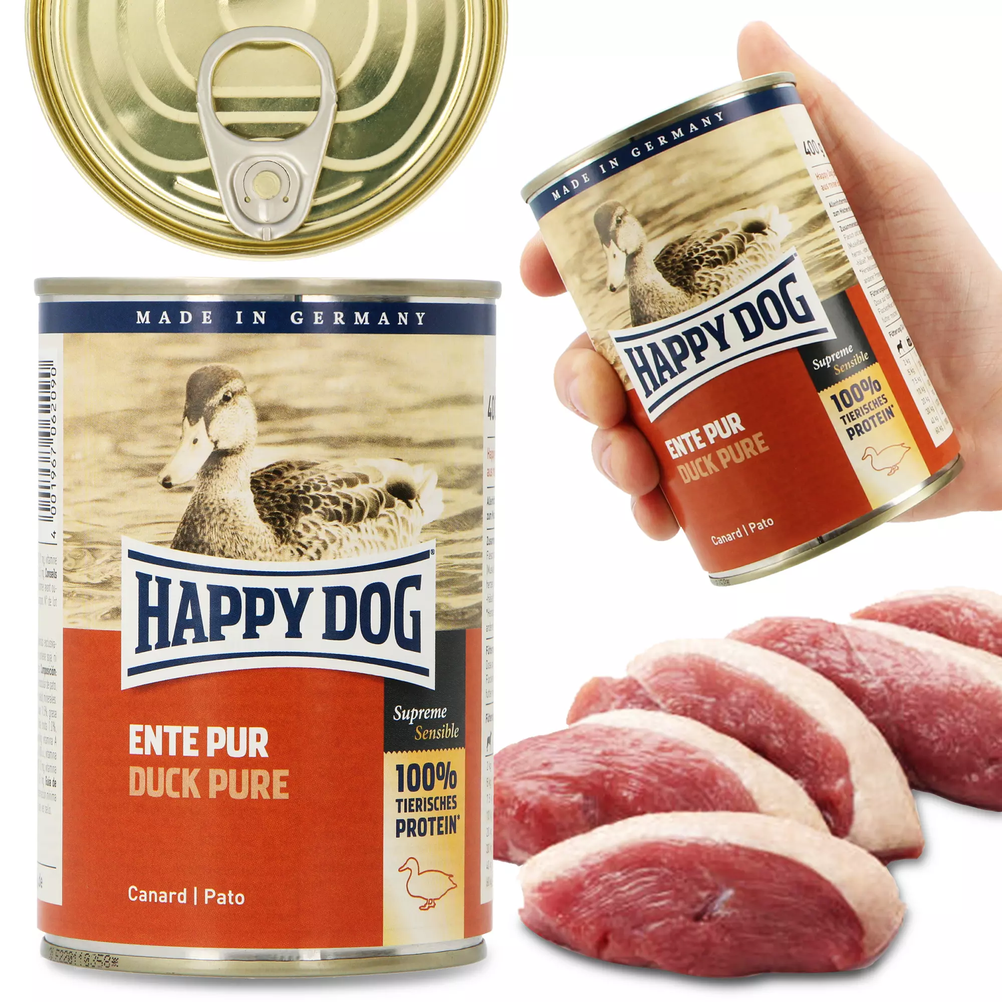 Karma w puszce Happy Dog Ente Pur zawiera 100% mięsa z kaczki. To doskonała dieta dla wszystkich psów - szczególnie tych bardzo aktywnych.