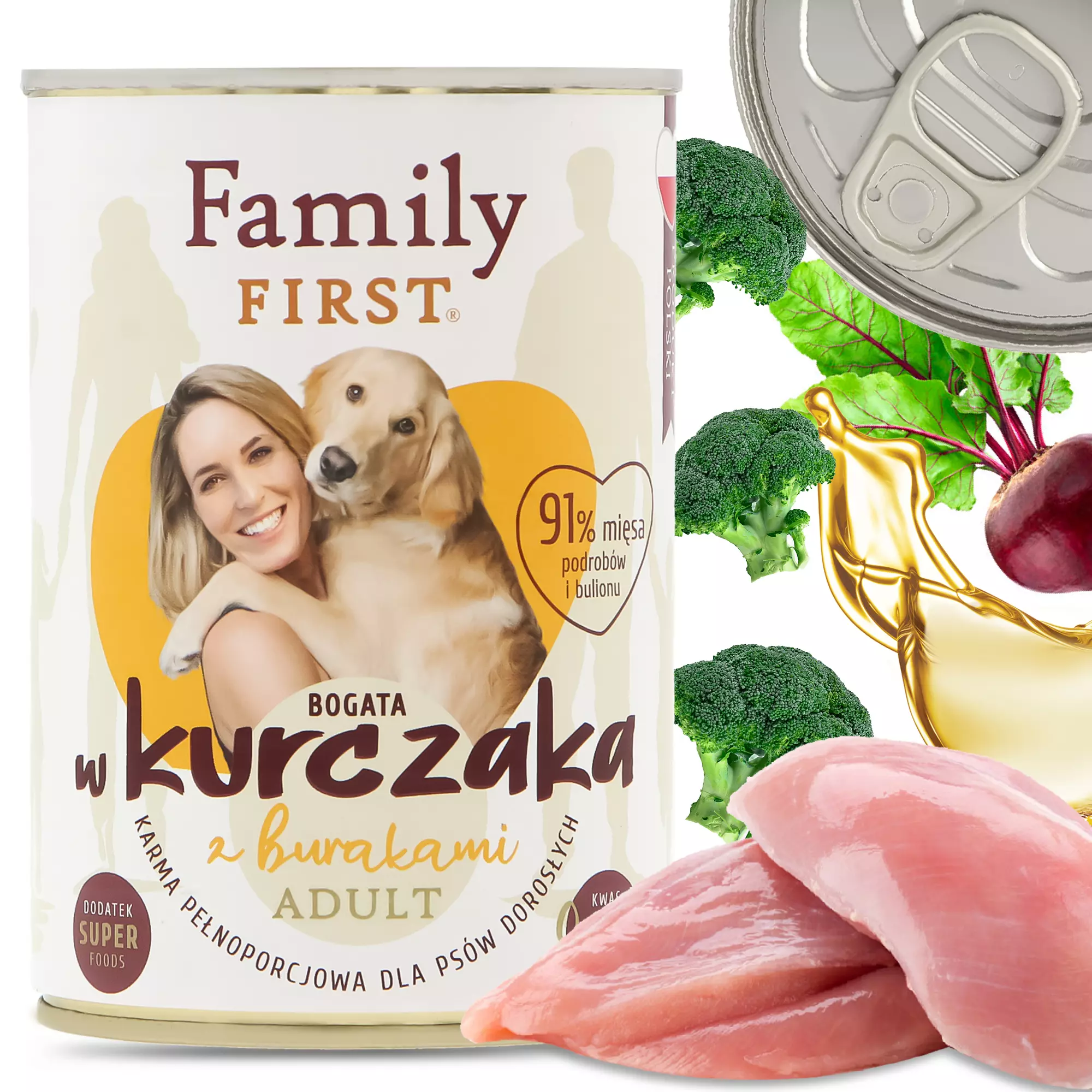 Warto postawić na nie tylko smaczną, ale także zdrową karmę - taką jak Family First Adult z kurczakiem. To doskonale zbilansowany posiłek, który doskonale odżywia psi organizm i zapewnia dobre samopoczucie.