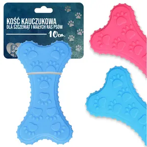 Kauczukowa kość to zabawka, która pozwoli Twojemu pupilowi się wyszaleć. Jej kształt i rozmiar został przystosowany specjalnie dla szczeniąt i psów najmniejszych ras. Dzięki temu pies może swobodnie ją nosić, gryźć i podrzucać!