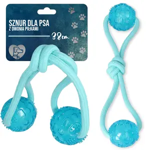 Postaw na sznur z piłkami! To akcesorium idealne do przeciągania, gryzienia przez szczeniaki, a także do nauki aportowania. Przekonaj się, że Twój psiak pokocha tę zabawkę.