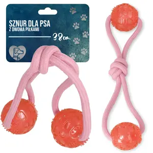 Postaw na sznur z piłkami! To akcesorium idealne do przeciągania, gryzienia przez szczeniaki, a także do nauki aportowania. Przekonaj się, że Twój psiak pokocha tę zabawkę.
