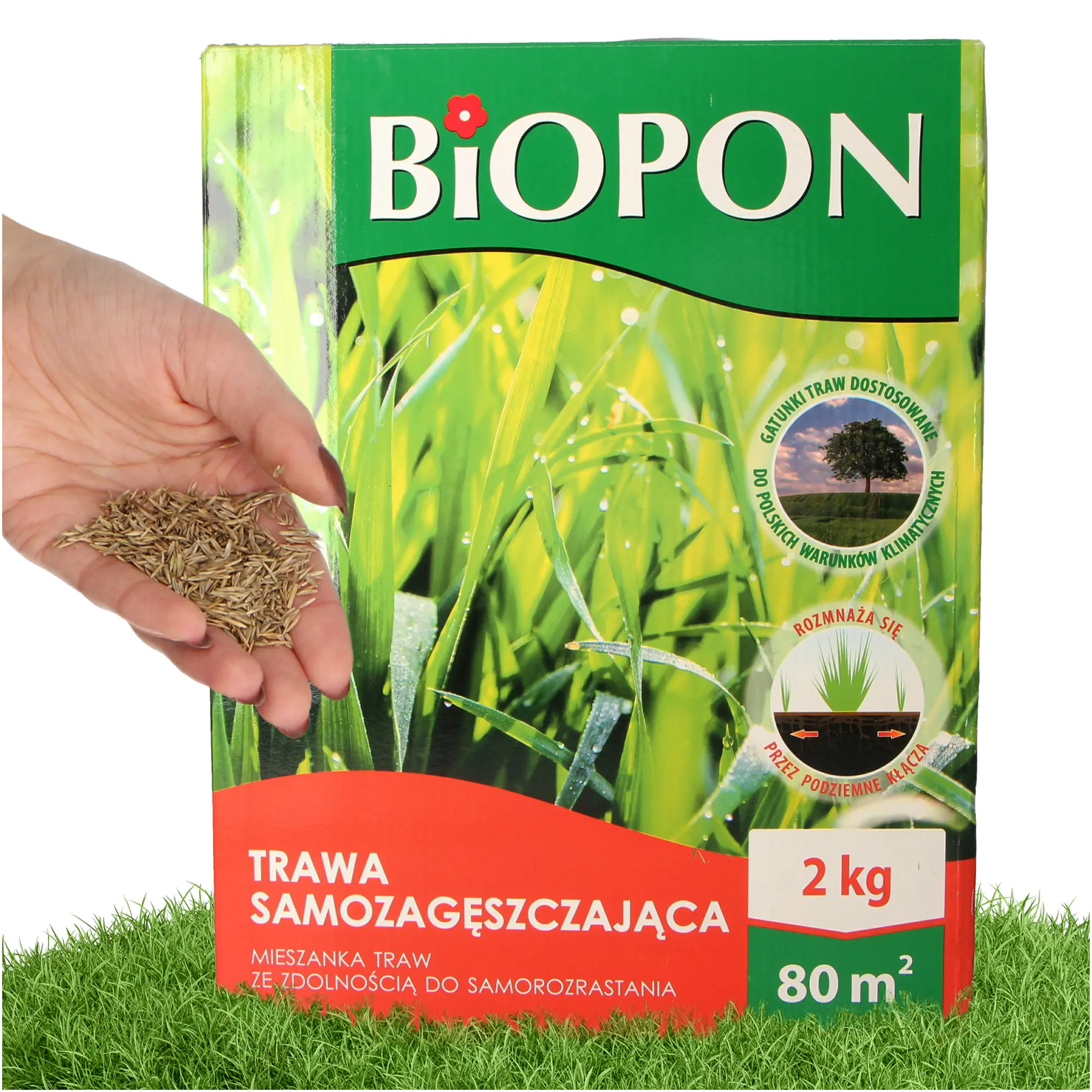 Miejsce wysiewu trawy wymaga wałowania. Następnie dzieląc nasiona mieszanki na 2 równe części trzeba wykonać ręczny wysiew krzyżowy. Nasiona trawy przykrywa się cienką warstwą ziemi (ok. 1-2 cm) za pomocą zagrabienia, a następnie ponownie wałuje obszar.