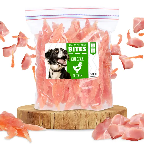 Uzupełnienie codziennej diety czworonoga - kawałki kurczaka doskonale sprawdzają się jako dodatek do codziennego menu pupila.