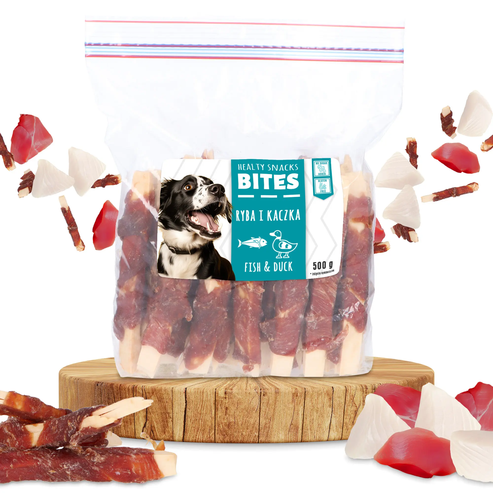Idealne na nagrodę podczas nauki - paski z rybą i kaczką to idealna przekąska i nagroda podczas szkolenia pupila.