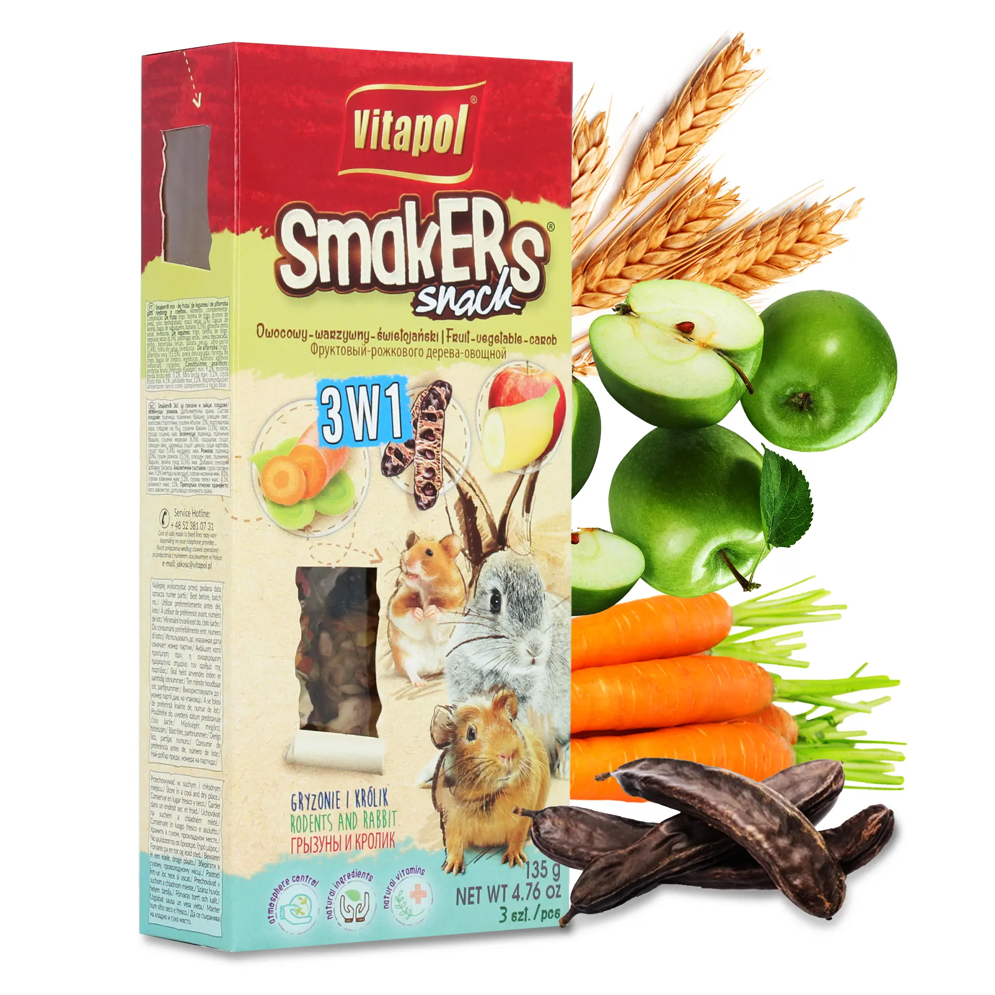 Kolby smakers w aż 3 smakach to naturalny wybór. Produkt łączy w sobie owoce, nasiona i warzywa, dzięki czemu stanowi świetnie uzupełnienie podstawowej karmy. Spraw przyjemność pupilowi!