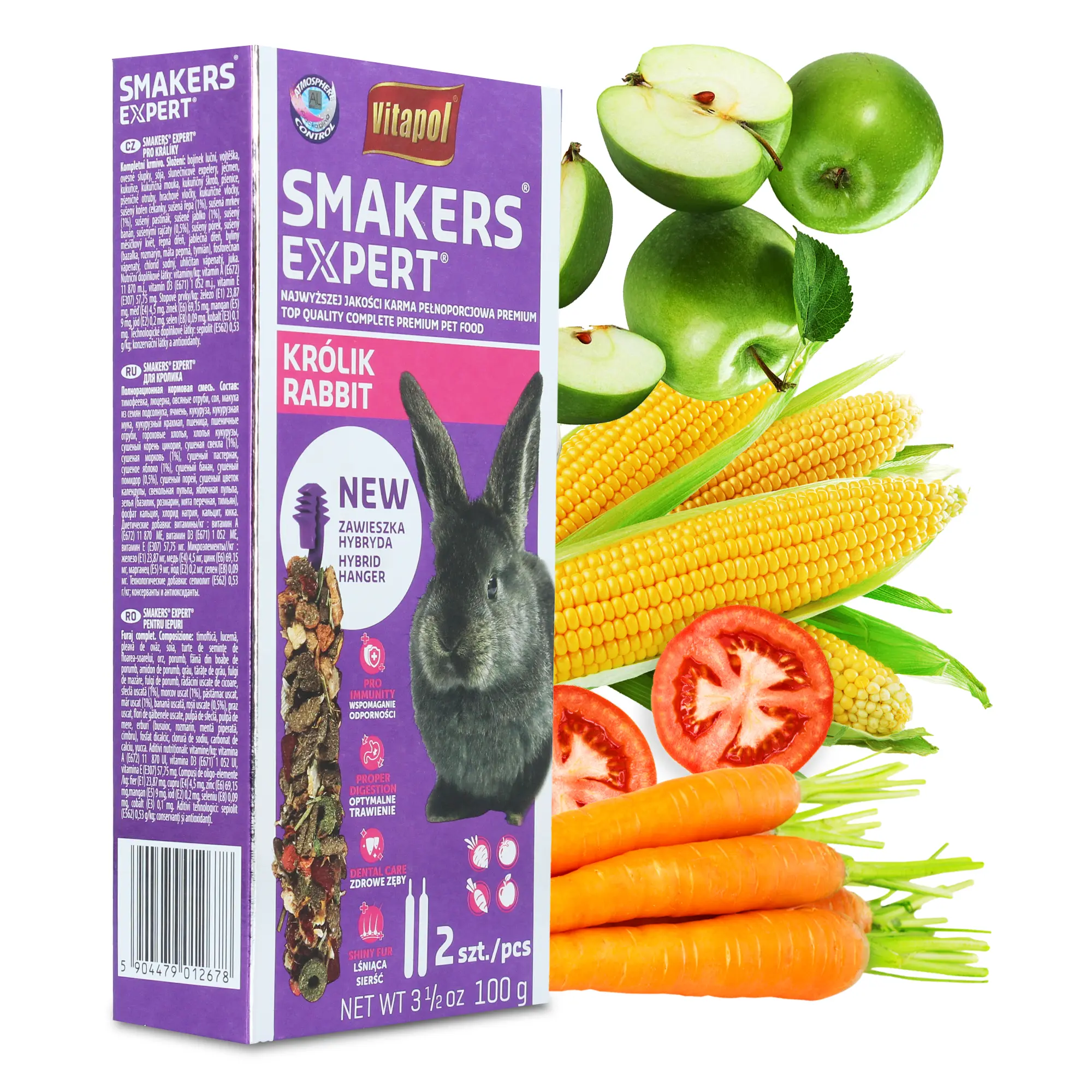Kolba Smakers® Expert® sprawdza sie doskonale jako samodzielna karma lub dodatek do podstawowego żywienia. Produkt jest pełen niezbędnych składników dla zdrowego rozwoju królika. Unikalna forma kolby to świetna zachęta do jedzenia.