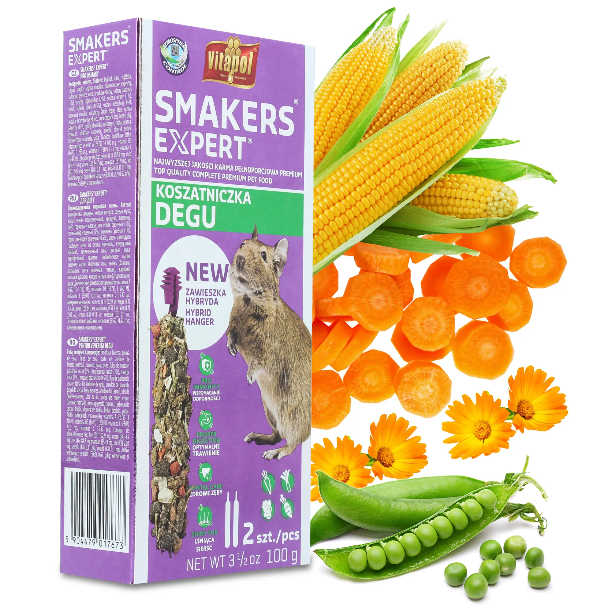 | Skład | Tymotka, lucerna, łuski sojowe, mączka sojowa, makuch z nasion słonecznika, kukurydza, pszenica, owies zwyczajny, płatki grochowe, pasternak suszony (3%), topinambur suszony (2%), marchew suszona (1%), groch, por suszony (0,5%), kwiat nagietka suszony, mąka z ziarna pszenicy, skrobia kukurydziana, pulpa buraczana, mąka ryżowa, skrobia ziemniaczana, olej słonecznikowy, olej lniany, pulpa jabłkowa, zioła (bazylia, rozmaryn, mięta pieprzowa, tymianek), węglan wapnia, drożdże, chlorek sodu, fosforan dwuwapniowy, juka. |
