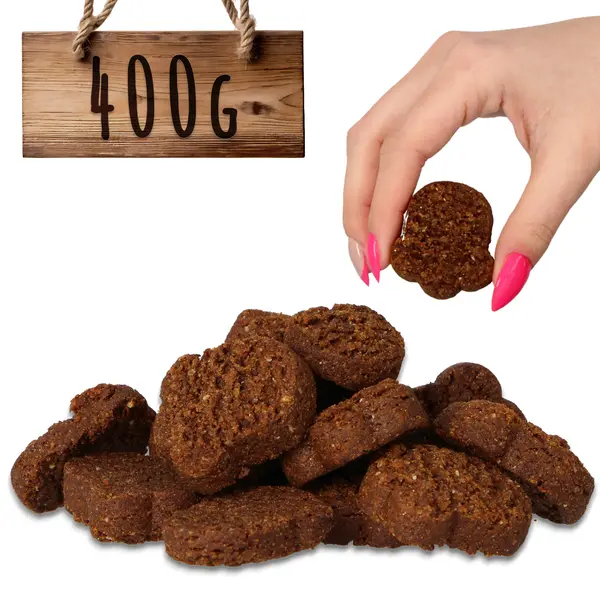 Uroczy kształt i ciekawa tekstura - kształt łapki to przyjemność dla Ciebie, a intrygująca tekstura ciasteczek zachęci psa do jedzenia.