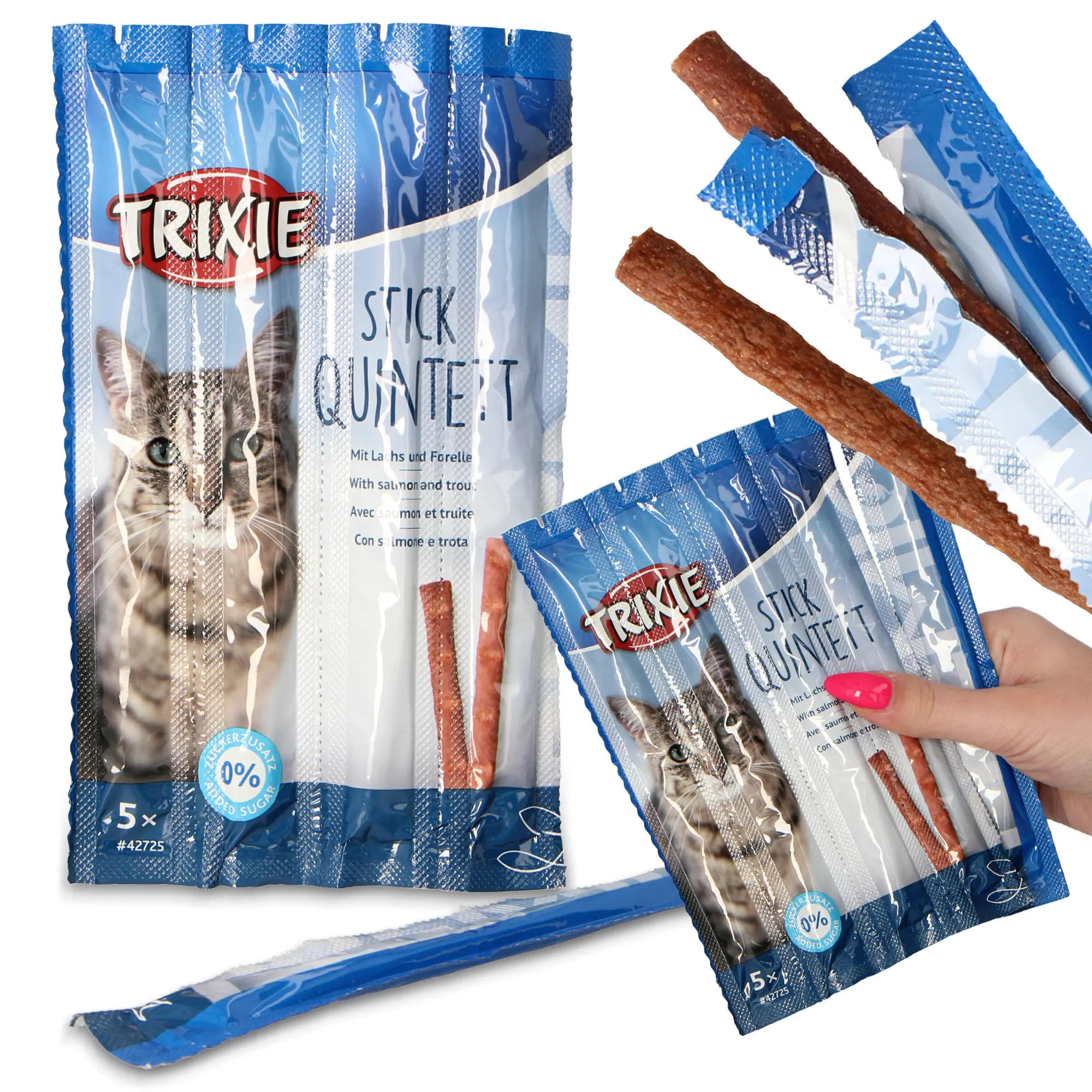 Paluszki są wyjątkowo miękkie, a na powierzchni oznaczono miejsca podziału. Dzięki temu bez trudu dostosujesz porcję przekąski do potrzeb Twojego kota.