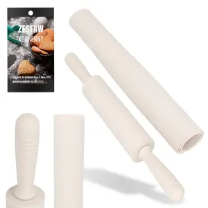 Stolnica jest miękka i elastyczna, dzięki czemu możesz wygodnie ją zwinąć i włożyć do szafki. Element nie zajmuje dużo miejsca. Wałek do ciasta wyróżnia się niewielką wagą, dzięki czemu nie zmęczysz dłoni podczas wałkowania.
