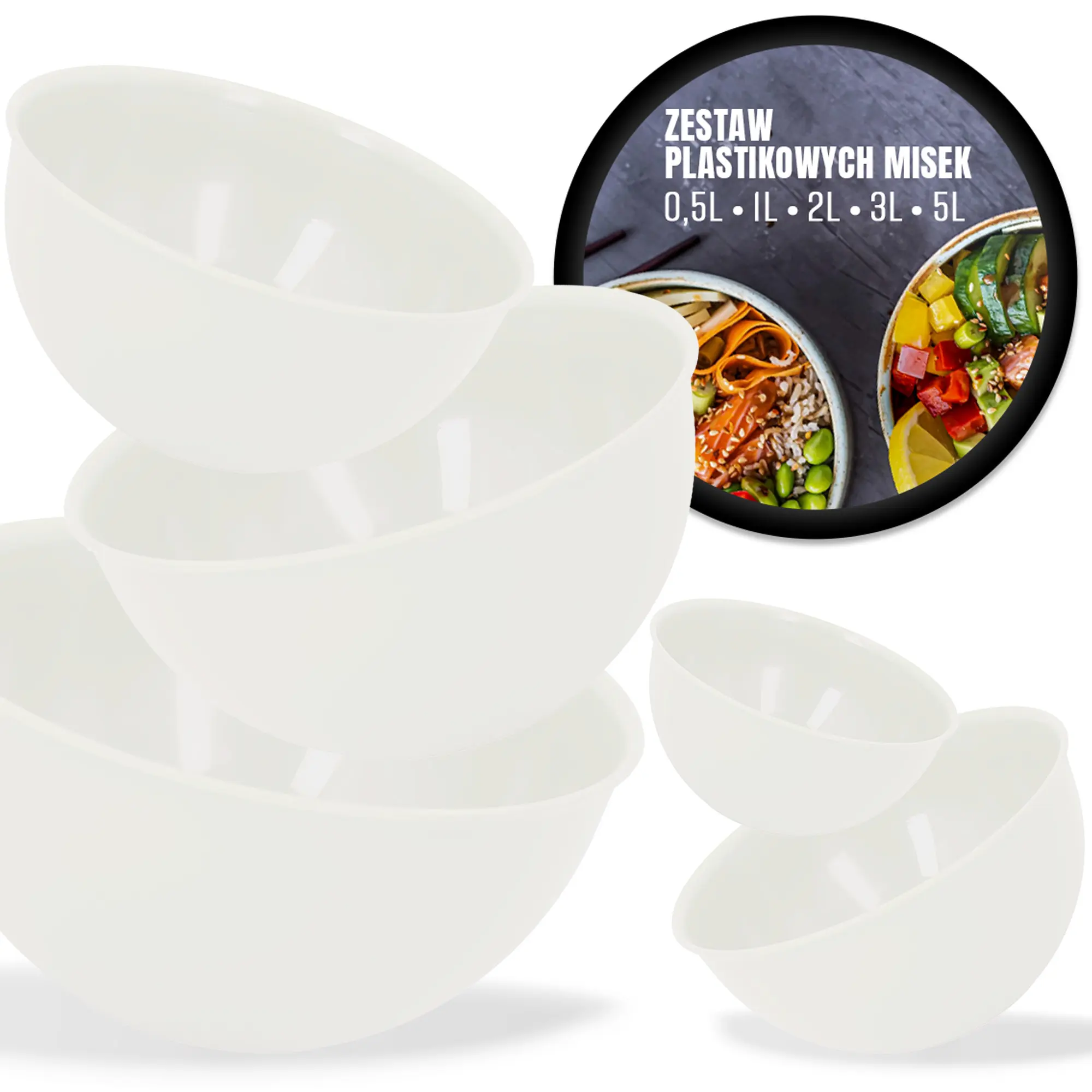 Zestaw plastikowych misek to praktyczny element, który sprawdza się w wielu sytuacjach. Miseczki przydadzą się do przechowywania jedzenia, ucierania ciasta, serwowania dań i sałatek.