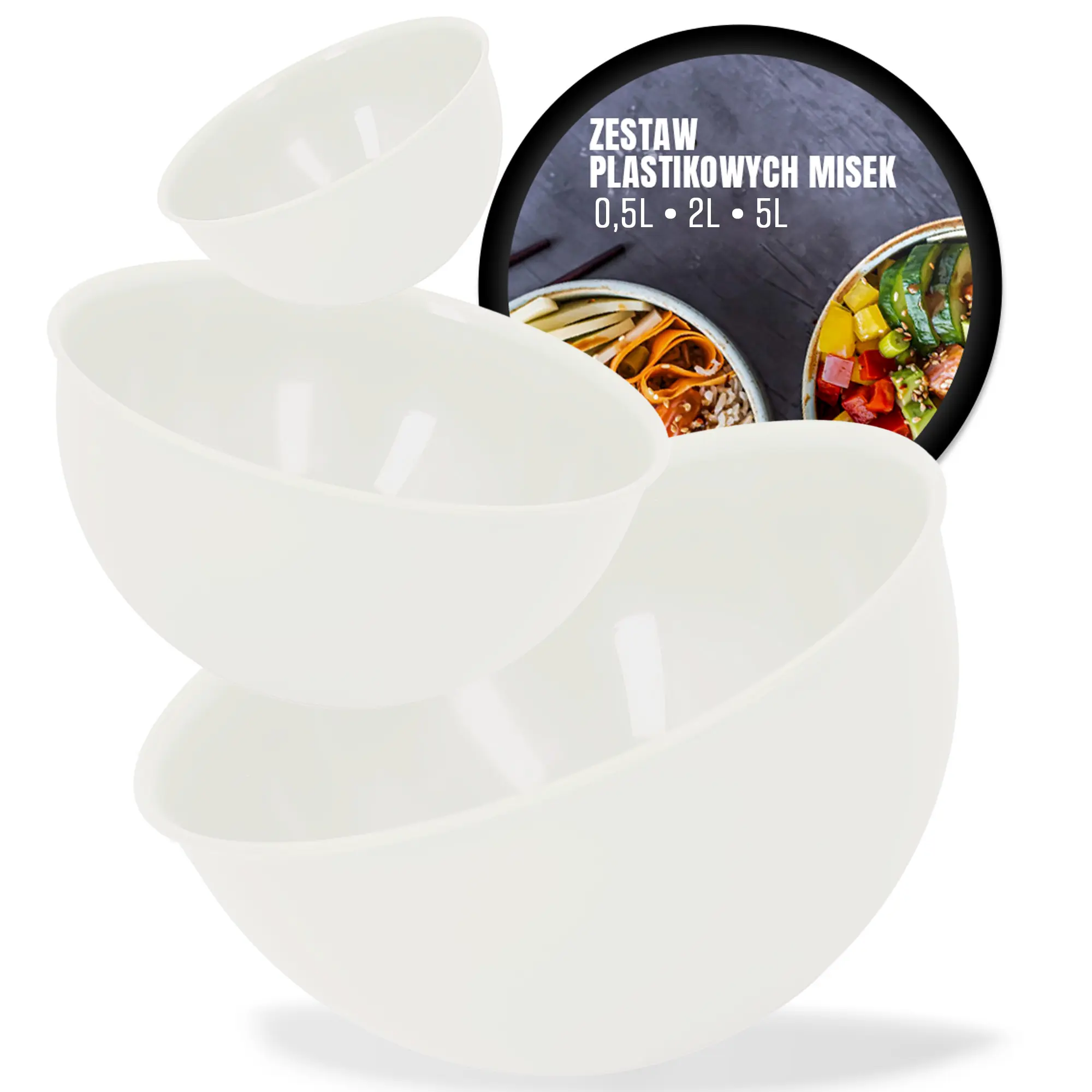 Zestaw plastikowych misek to praktyczny element, który sprawdza się w wielu sytuacjach. Miseczki przydadzą się do przechowywania jedzenia, ucierania ciasta, serwowania dań i sałatek.