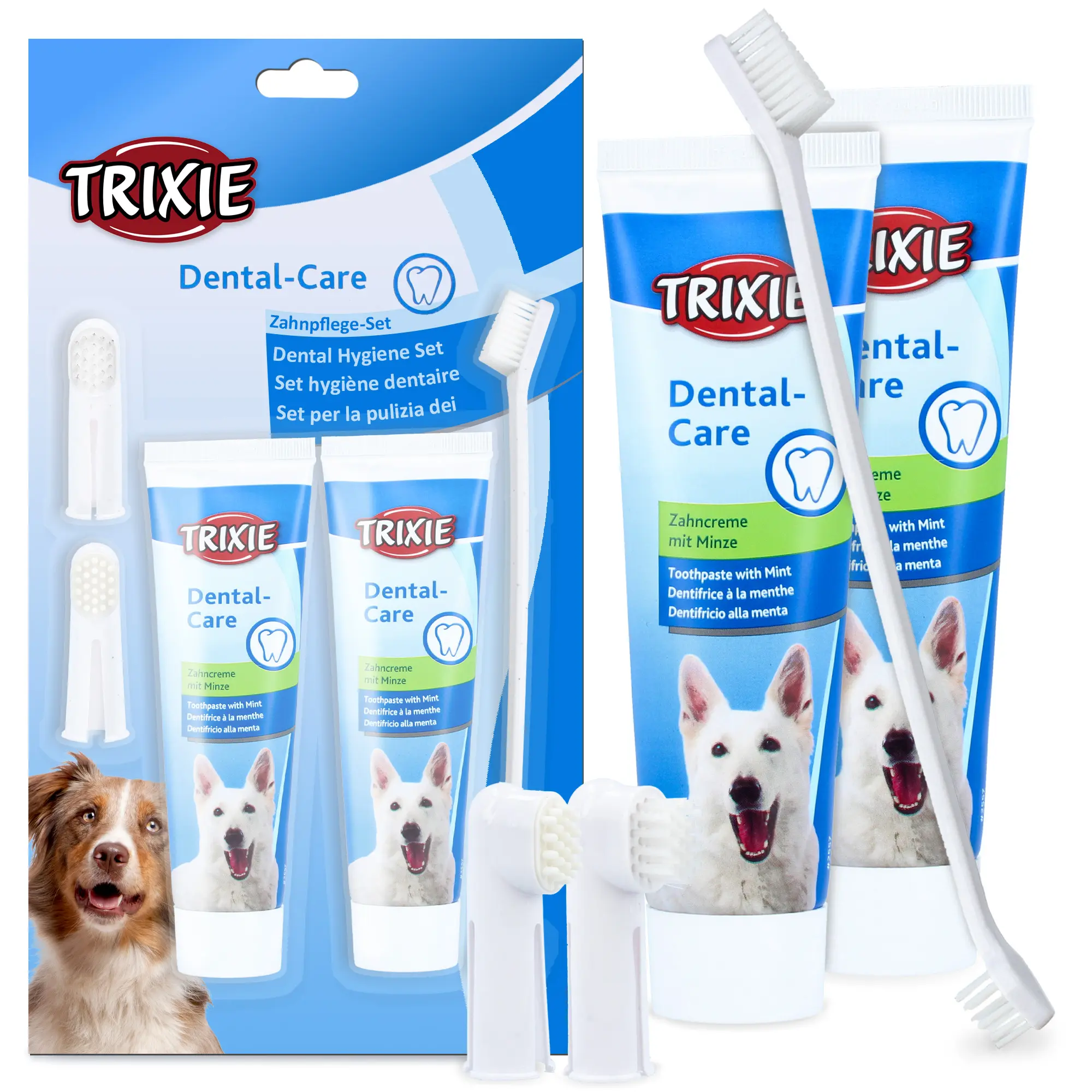 Postaw na zestaw, który zawiera wszystko, czego potrzebujesz, aby zapobiec problemom z uzębieniem zwierzaka. Dwustronna szczoteczka, nakładki na palec do czyszczenia i masażu oraz specjalna pasta zapewnią ochronę Twojemu zwierzakowi od najmłodszych lat.