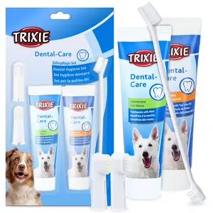 Postaw na zestaw, który zawiera wszystko, czego potrzebujesz, aby zapobiec problemom z uzębieniem zwierzaka. Dwustronna szczoteczka, nakładki na palec do czyszczenia i masażu oraz specjalna pasta zapewnią ochronę Twojemu zwierzakowi od najmłodszych lat.