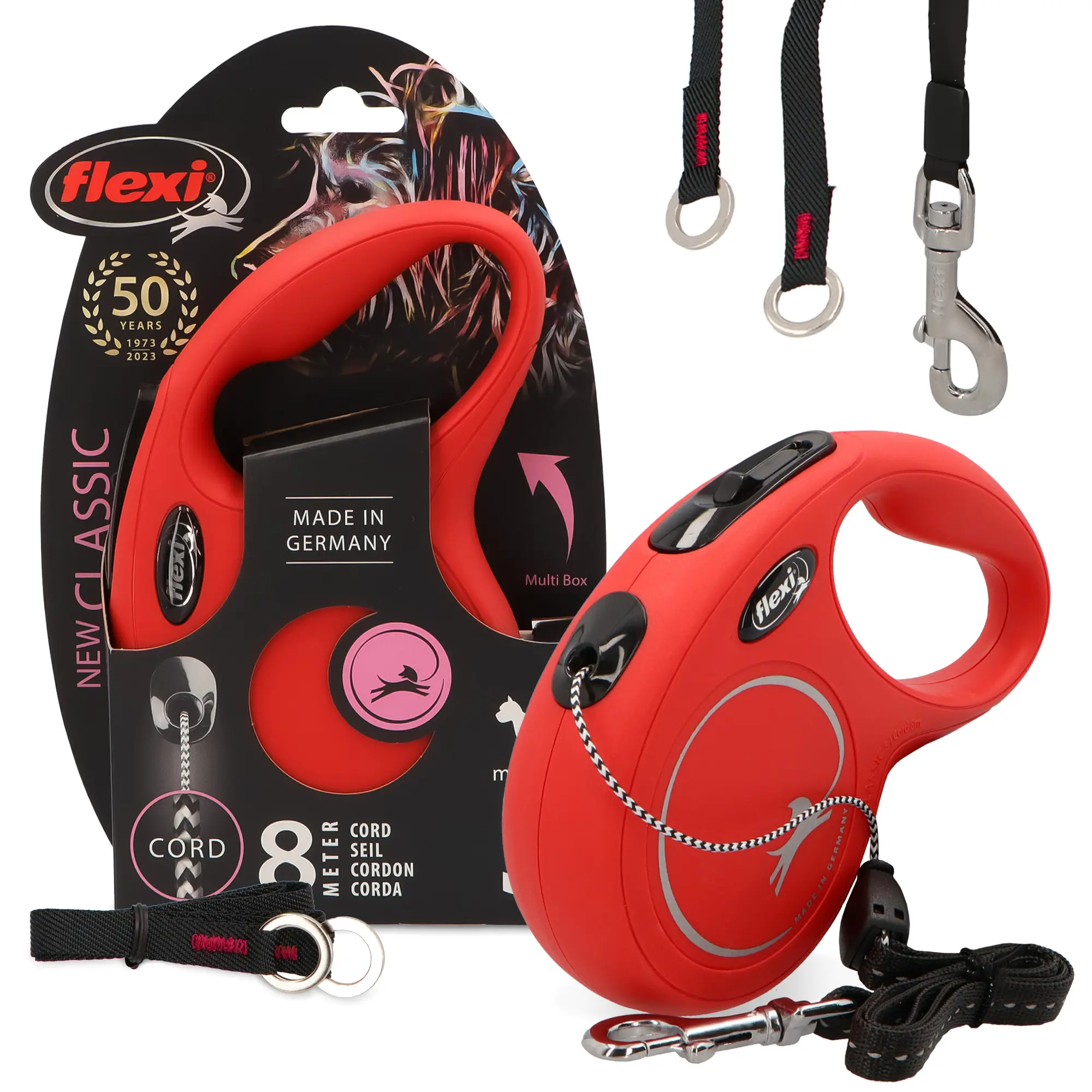 Chcesz jeszcze bardziej zwiększyć wygodę podczas przechadzek? Smycz można wyposażyć w dodatkowe akcesoria takie jak pojemnik na woreczki i przekąski lub niewielką lampkę.