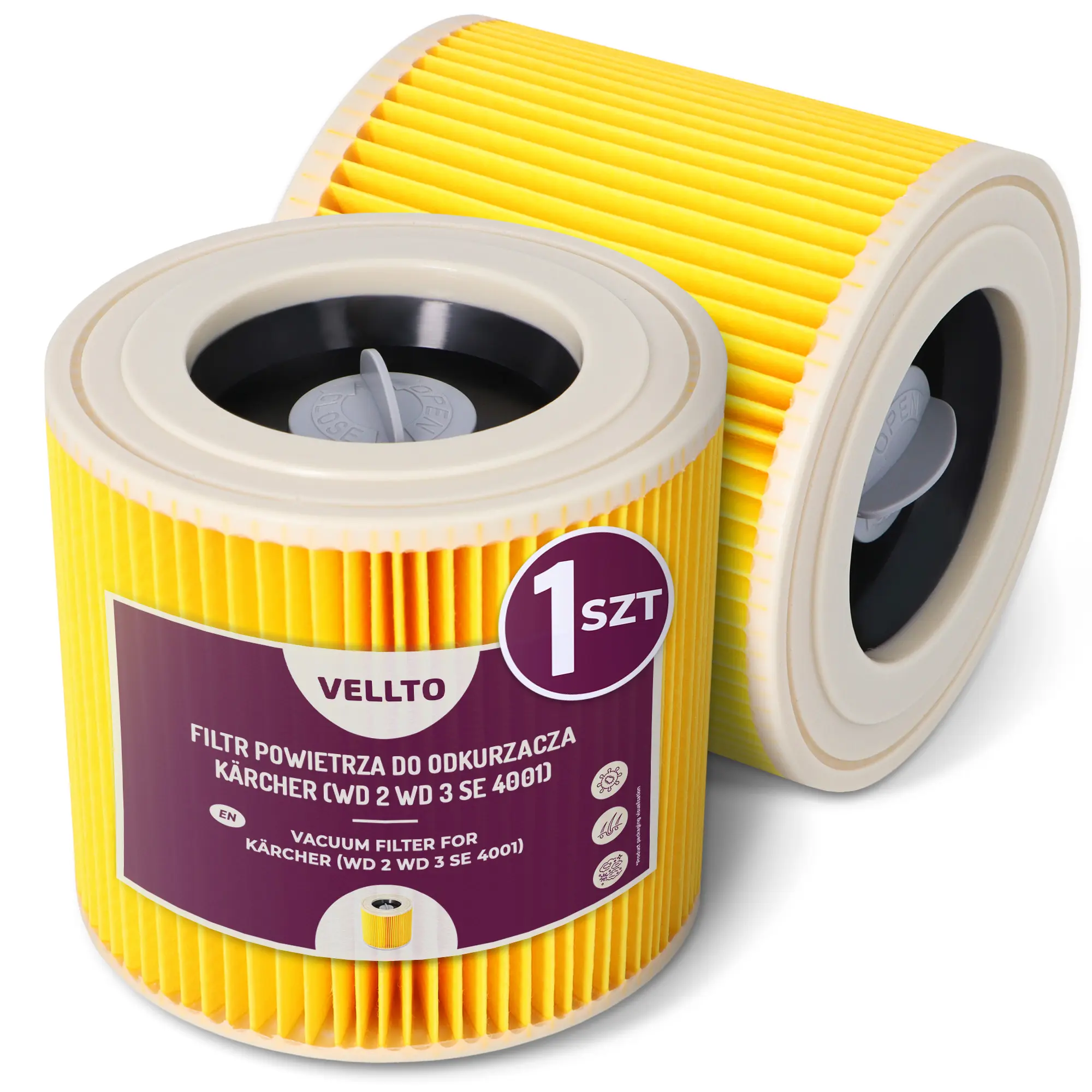 Filtr cartridge do odkurzaczy Kärcher zatrzymuje kurz, pył i drobne zanieczyszczenia, zapobiegając ich ponownemu unoszeniu się w powietrzu.