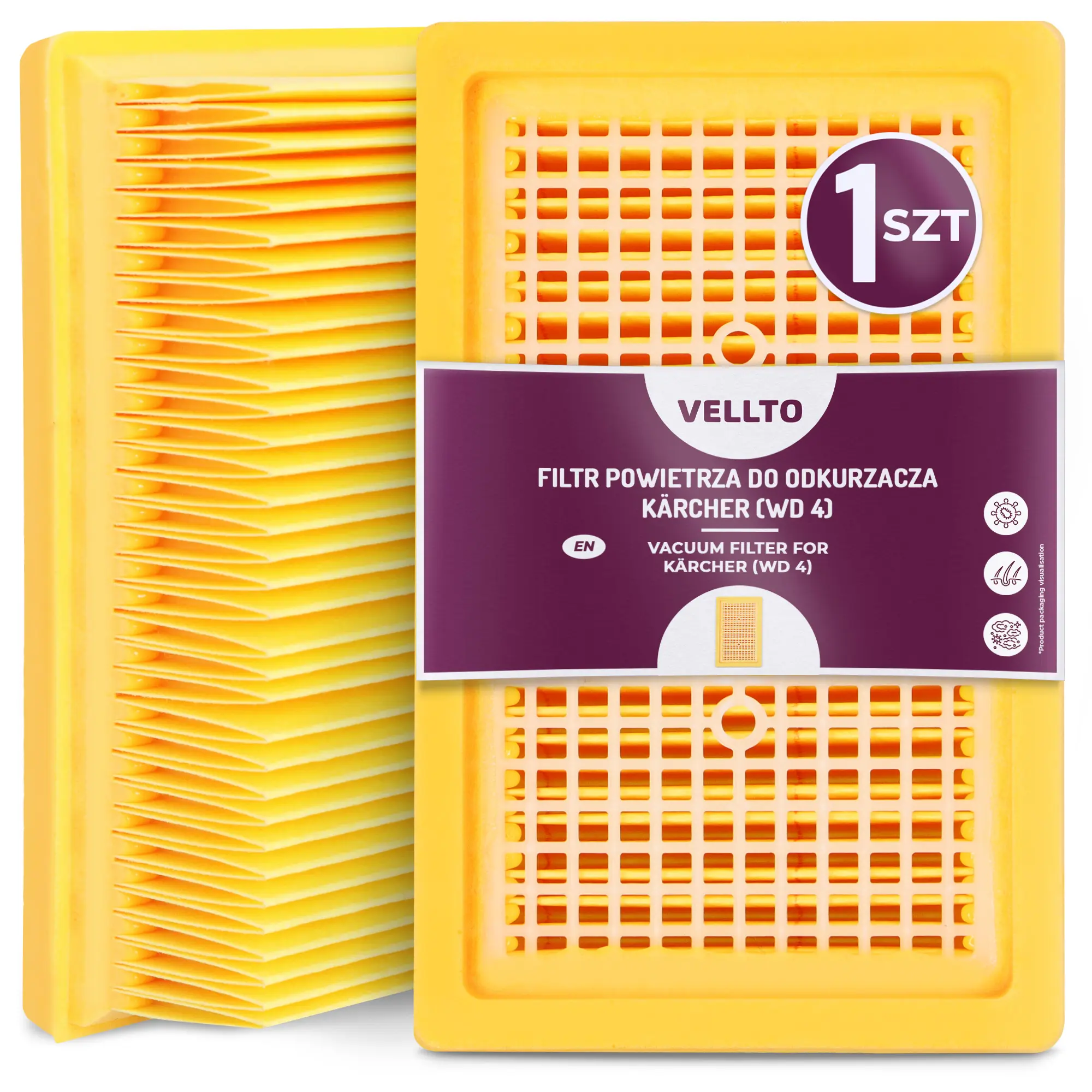 Filtr do odkurzaczy Kärcher serii WD, wykonany z wysokiej jakości bibuły filtracyjnej, skutecznie usuwa pył, kurz i drobne cząstki z zasysanego powietrza.