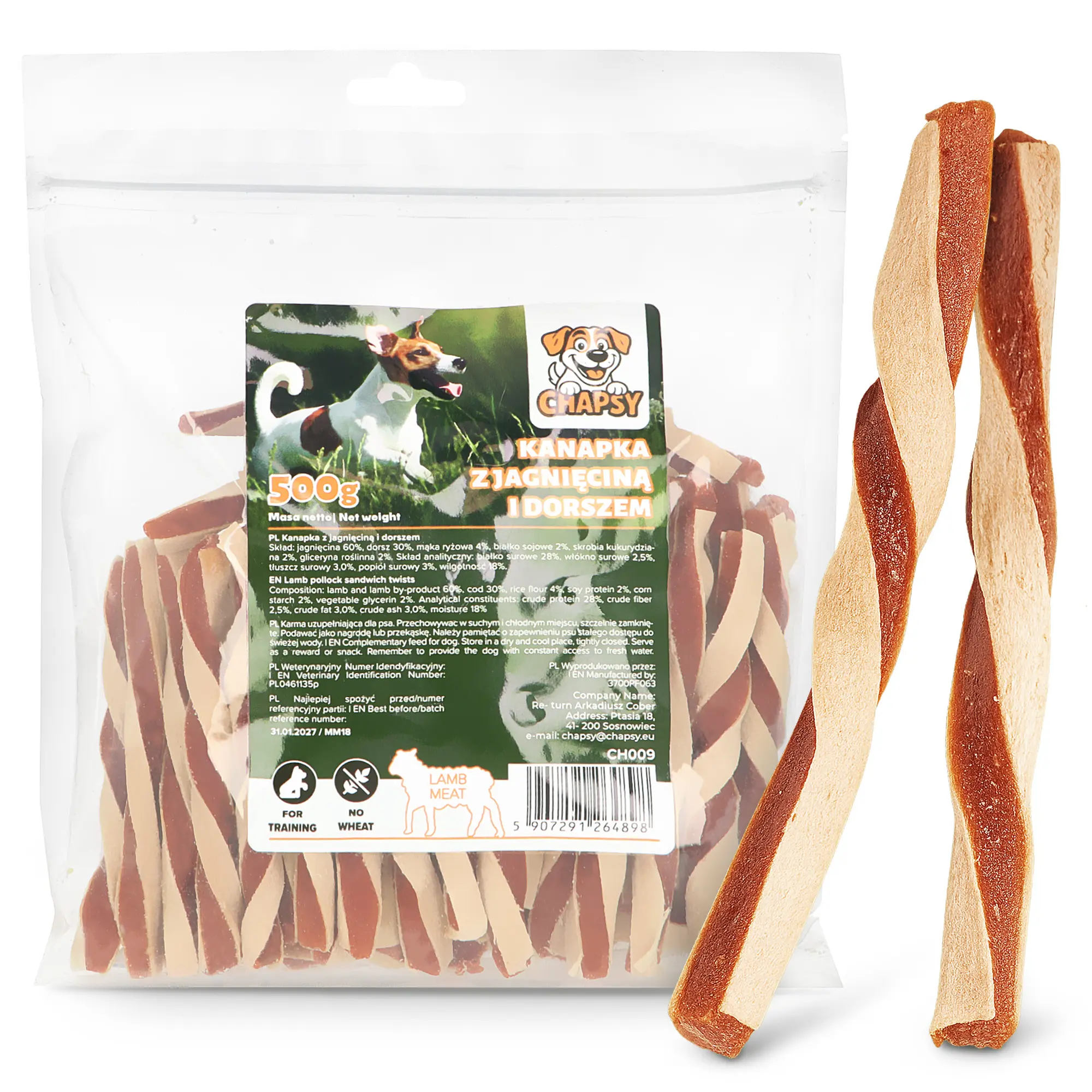 Ta wyjątkowa przekąska dostarcza psu nie tylko radości z chrupania, ale także wartościowego białka i kwasów omega-3. Jagnięcina słynie z lekkostrawności, a dorsz to ryba szczególnie ceniona za wspieranie zdrowia skóry i sierści.