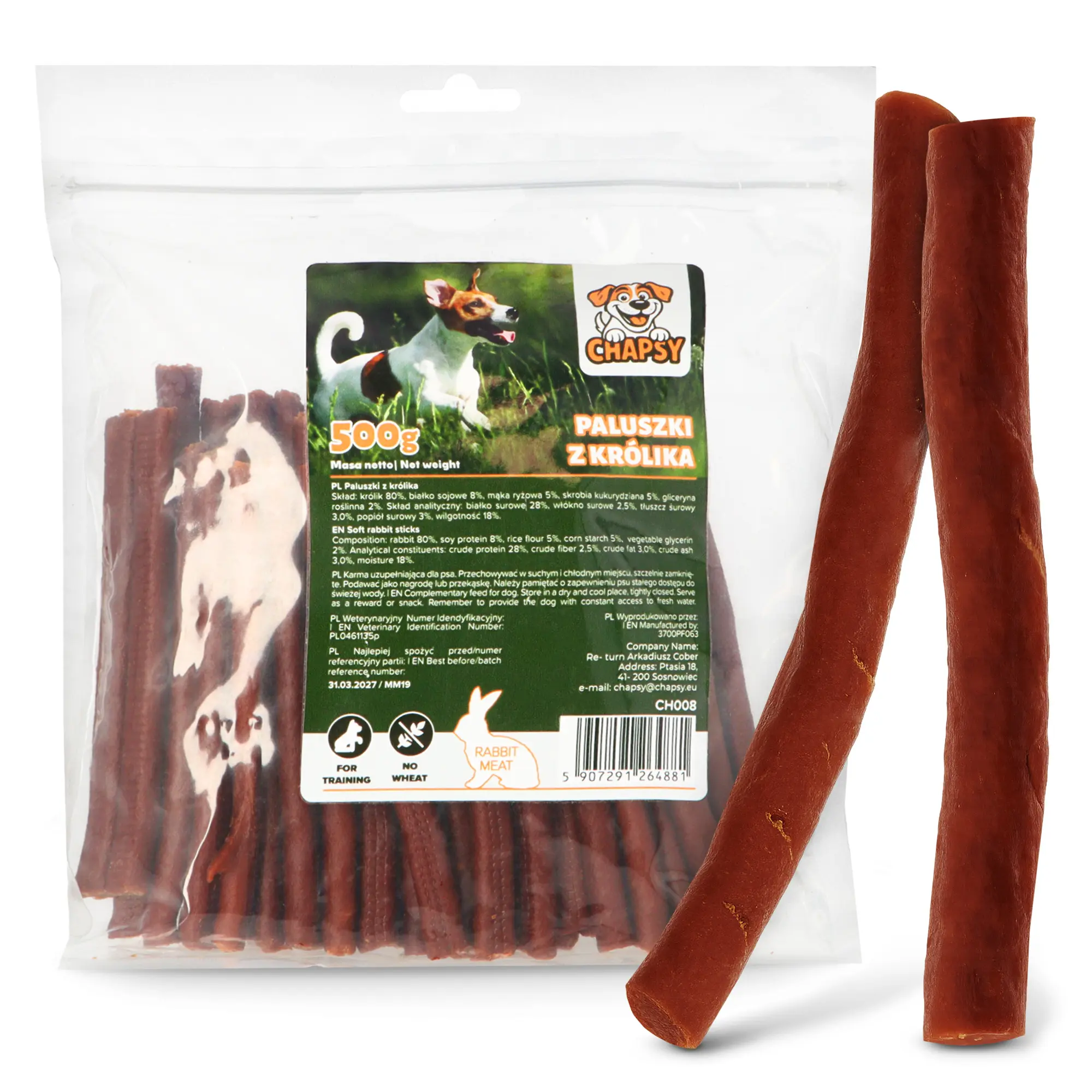 Paluszki powstają z wysokiej jakości mięsa królika, bez dodatku konserwantów, barwników i zbędnych wypełniaczy. Dzięki temu stanowią zdrową przekąskę, która zaspokaja potrzeby nawet psów o szczególnie wrażliwym układzie trawiennym.