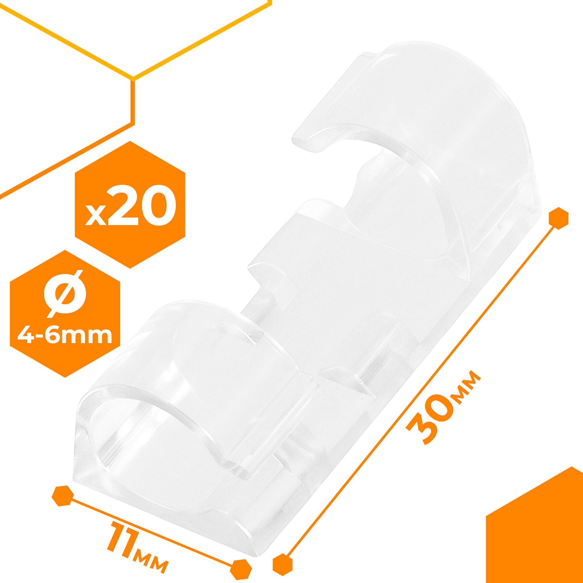 Każdy klips jest mocowany na mocny klej akrylowy, który trzyma się powierzchni przez długi czas, nawet w miejscach o większym obciążeniu przewodami. Konstrukcja z zaciskami po obu stronach chroni przed wysuwaniem się kabli, zapewniając im stałe położenie.