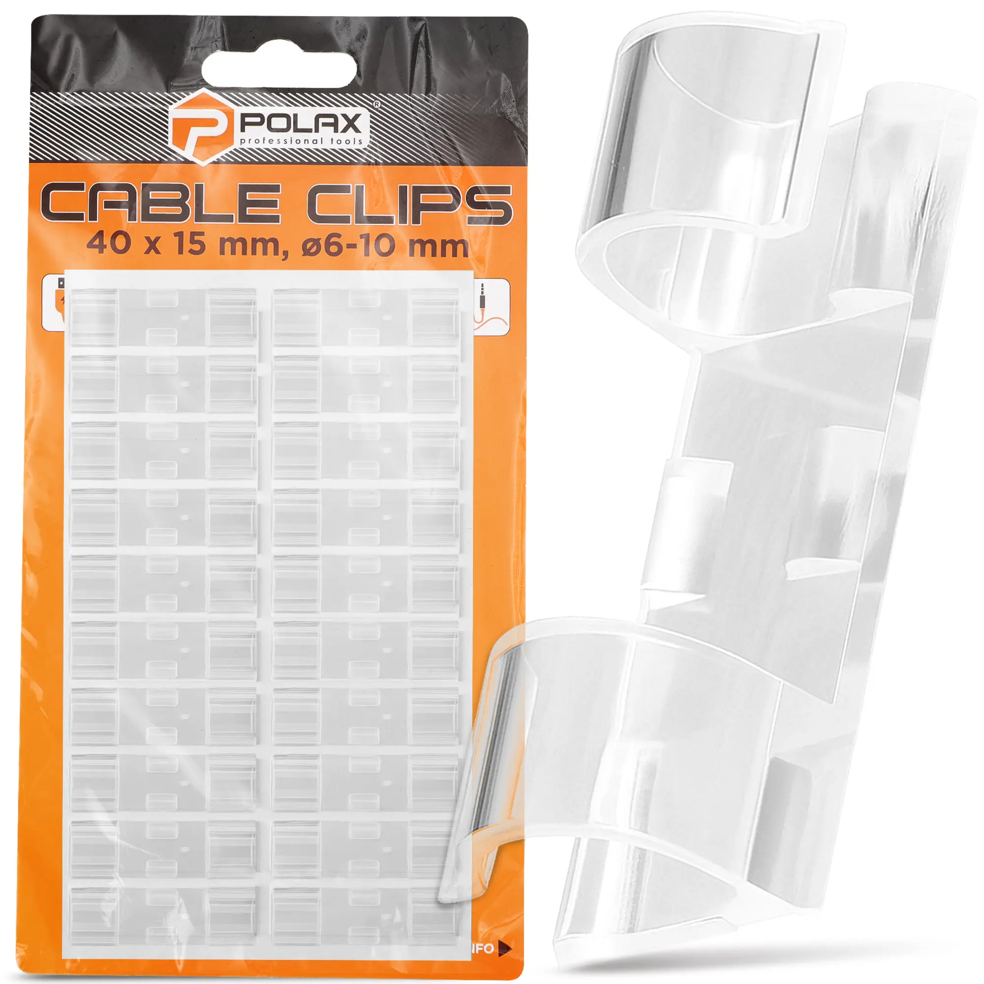 Każdy klips jest mocowany na mocny klej akrylowy, który trzyma się powierzchni przez długi czas, nawet w miejscach o większym obciążeniu przewodami. Konstrukcja z zaciskami po obu stronach chroni przed wysuwaniem się kabli, zapewniając im stałe położenie.
